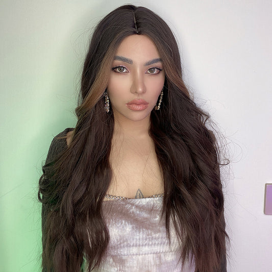 LILY【WA-SM5036】32inches Dark Brown Wigs for Women Body Wave Synthetic Wigs with Middle Part Heat Resistant Hair Wigs for Daily Party Use