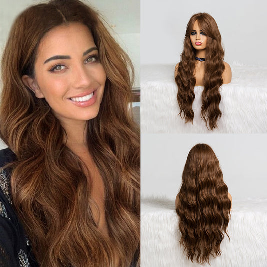 SCARLETT【WA-LAIC1026-1】28inches Ombre Brown Wig Natural Body Wave with Bangs Synthetic Heat-resistance Daily or Party