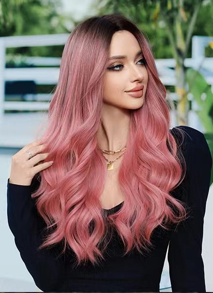 MAYLIN90【WA-XY9059】 26" Long Wavy Lace Wigs for Women, Pink,Long Loose Body Wave Wig Synthetic for Daily Use or Party