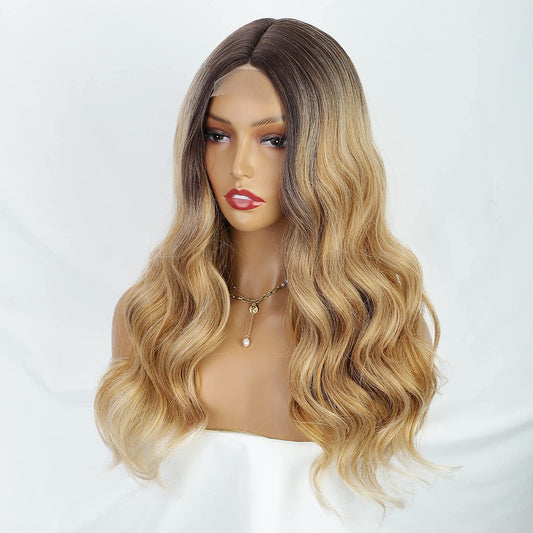 OMBRE【WA-NYL2311】24inches Mixed Blonde Wig Long Body Wavy Wigs for Women Synthetic Middle Part Wig Long Heat Resistant for Daily & Party Use