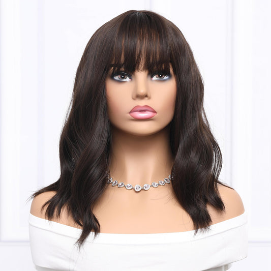 VIKA【 WA-SM210-4】16inches Dark Brown Curly Bob Wigs Short Wavy Bob Wig with Bangs Women's Shoulder Length Wigs Natural Looking Synthetic Cosplay