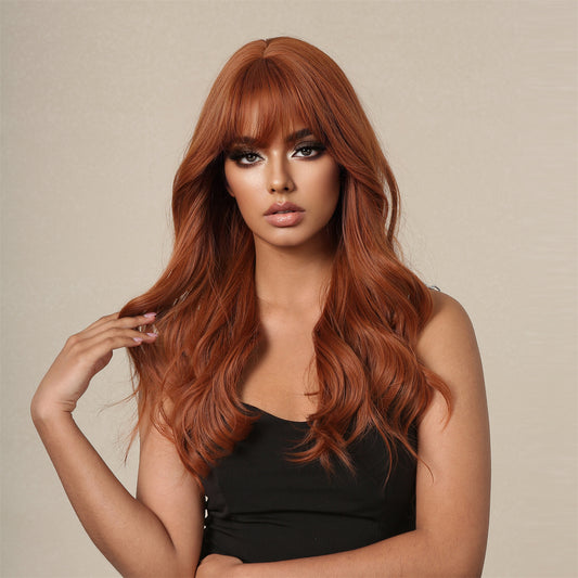 BESS【WA-LAIC034】24inches Ginger Wig Natural Body Wave with Bangs Synthetic Heat-resistance Daily or Party