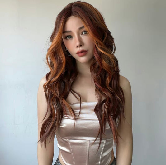 AZARI 【WA-SM9029】 Ombre Ginger Copper Highlight Lace Frontal Wig T-part 24 inch Synthetic Daily or Party