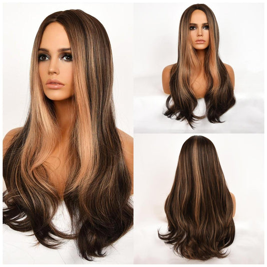 LEOSA【WA-LC277-1】26 inches Body Wave Wig for Women Brown Black Highlight Long 26 inches Curls Synthetic Glueless