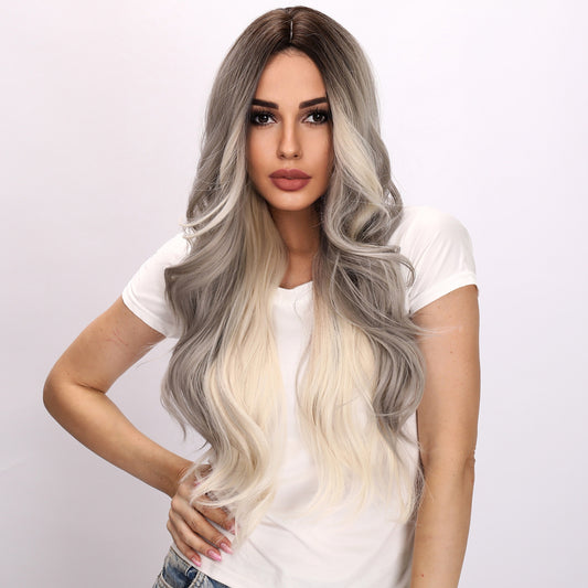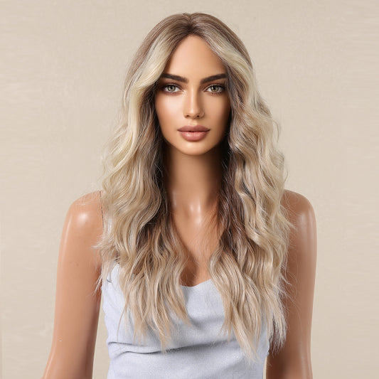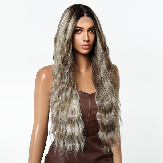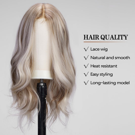 Delilah【WA-SM1622】 28" Gray Blonde Highlight Wavy Middle Part Synthetic Wigs for Daily Use/Party