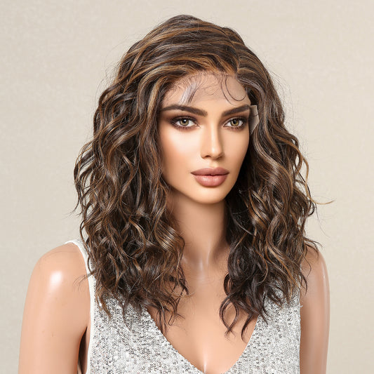 EMMA【WA-BL66084-1】 28" Lace Front Wavy Synthetic Brown wig for Daily Use/Party