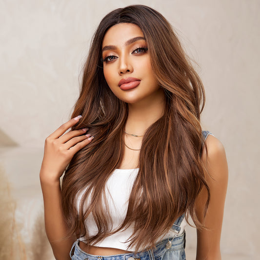 LIGA【WA-YJBL66018-1】28inches T-Part Frontal Lace Honey Brown Highlight Body Wave Wig Synthetic Daily or Party