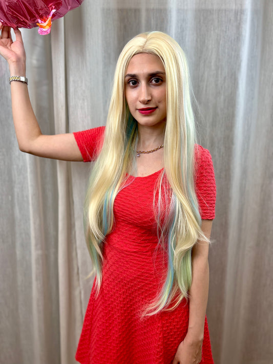 Serafina【WA-YHZYM28】30inches Frontal Lace Rainbow Blonde Highlight Wig Straight Synthetic Heat-resistance Daily or Party