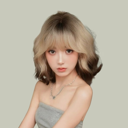 LUNA【V-003-D-116】White Coffee Two-tone Gradient Short Hair Convertible Bangs 35CM High-temperature Fiber Exotic Style Wig for Women Daily & Trendy